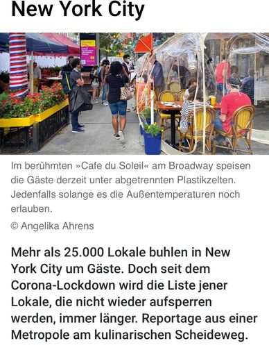 More than 25,000 restaurants vie for guests in New York City. But since the Corona lockdown, the list of those bars that will not open again has been getting longer and longer. Report from a metropolis at the culinary crossroads. https://www.falstaff.at/nd/corona-gastro-kollaps-in-new-york-city/